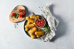 Chilled Mozzarella Sticks sind echte Bestseller, die es jetzt auch im Kühlregal gibt. Auf die knusprige Hülle folgt der zartschmelzende Kern aus cremigem Mozzarella. Für köstliche Genussmomente zwischendurch.